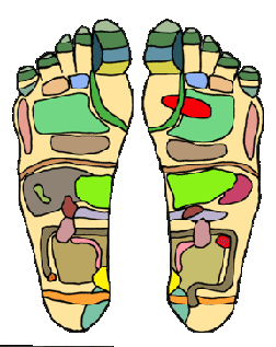 The most common form is foot reflexology. Practitioners believe the foot to be divided into a number of reflex zones corresponding to all parts of the body, and that applying pressure to tight or "gritty" areas of a person's foot will stimulate the corresponding body part and cause it to begin healing itself.
